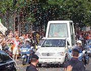 La sala stampa della Santa sede ha però precisato che la partecipazione «era prevista nel programma ufficiale del viaggio del Papa a Milano, preparato già da moltissimo tempo», perché questa visita, dato che è inserita nell'Incontro Mondiale delle famiglie, «ha carattere internazionale». L'Airbus A319 CJ dell'Aeronautica Militare, messo a disposizione dalla Presidenza del Consiglio, è partito dall'aeroporto militare di Ciampino alle 16.20 ed è atterrato poco dopo le 17 all'aeroporto di Linate. L’autovettura panoramica si è quindi avviata per viale Forlanini verso piazza Duomo. A bordo del mezzo, accanto al Papa, l’arcivescovo milanese Angelo Scola e padre Georg Gaenswein, il segretario del Pontefice.